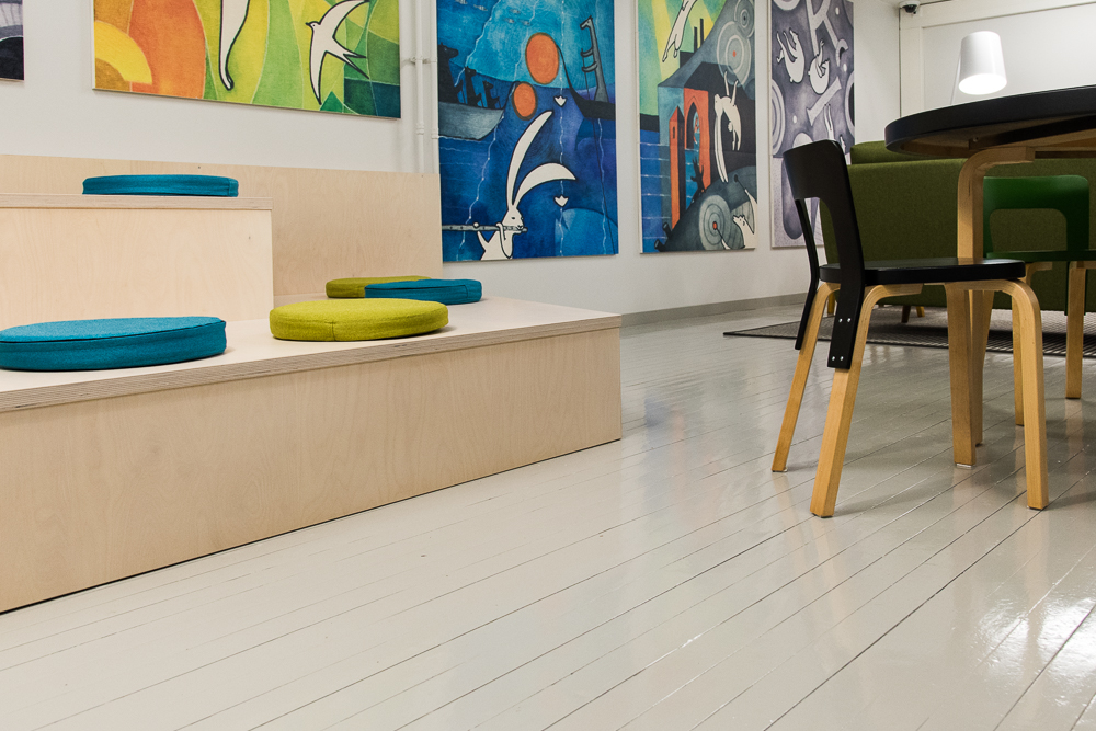 ”Yhteistyö CDM:n kanssa sujui erinomaisesti. CDM:n loistoidea oli Heli Pukin seinämaalaukset, jotka luovat kerhotilaan värikkään ja persoonallisen ilmeen. Rakennuksen aikakauden tyylin huomioiminen onnistui hienosti. Kalustesuunnittelusta ja tilan värimaailman ideoimisesta oli myös iso apu.”